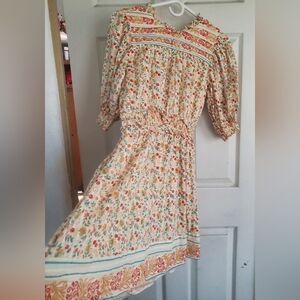 Cleobella Dallas Mini Carnation All Over Print Dress With Open Back, Size Medium, Smocked waist, in great condition