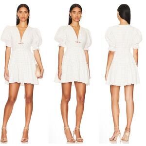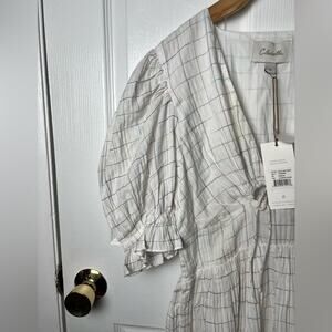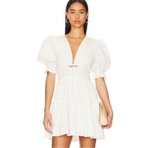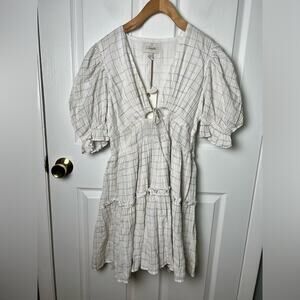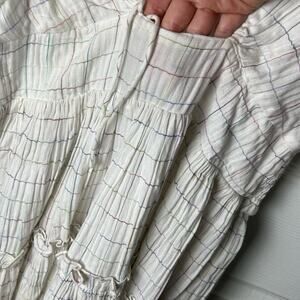 Cleobella Della Puff Sleeve Cotton Rainbow Check Print Mini Dress M