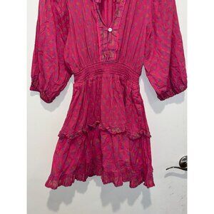 Cleobella Pink Boho Floral Smocked Waist Ruffle Women's Mini Dress Size S