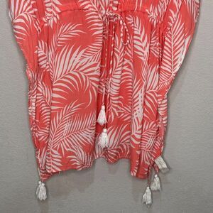 Cleobella Dreamy Sunset Swim Cover-Up One Size Tassels Palm Print Coral White