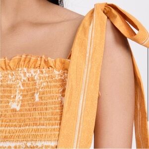 Sunshine in a dress. This Cleobella mini is made from 100% organic cotton with a smocked bodice, adjustable tie straps, and tiered ruffle skirt. Flattering, comfy, and perfect for brunch, vacation, or warm-weather days.