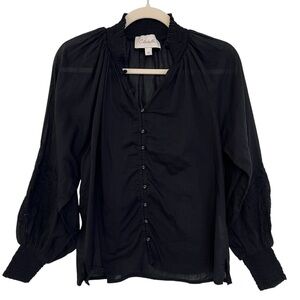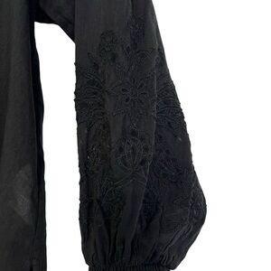 Cleobella Embroidered Crochet Lace Long Sleeve Blouse Black XS Boho Contemporary