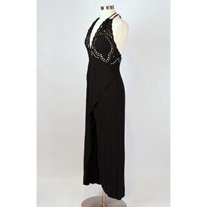 Cleobella Embroidered Lace Halter Midi Maxi Dress Tulip Hem Black - Size XS