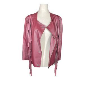 Cleobella Everly Fringe Moto 100% Genuine Sheep Leather Jacket Burgundy Red L