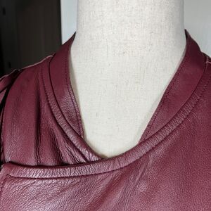 Cleobella Anthropologie Womens Everly Fringe Moto 100% Genuine Sheep Leather Jacket Burgundy Red L