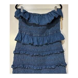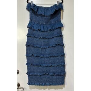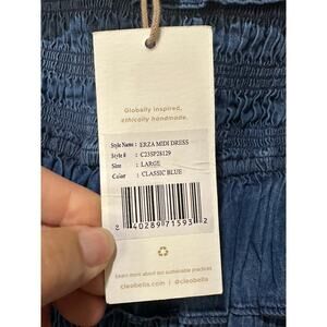 Cleobella Ezra Midi Dress Classic Blue Size Large NWT Strapless Smocked Bodice