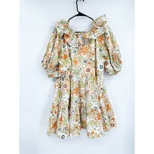 Cleobella Farrah Retro Floral Print Ruffled Puff Sleeve A-Line Poplin Mini Dress