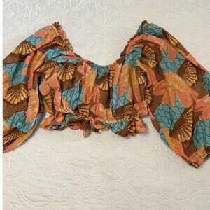 Cleobella Faye Cropped 3/4-Sleeve Blouse Balloon Sleeve Crop Women’s Size Small