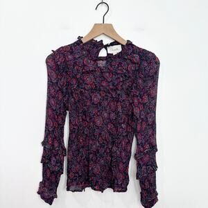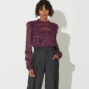 Cleobella Fiorella Blouse Bordeaux Floral Top size Small Romantic Feminine