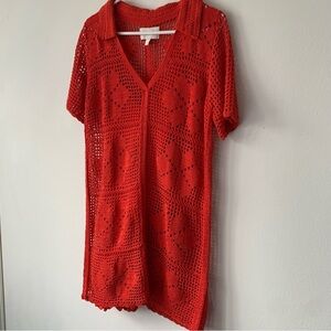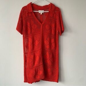 Cleobella Ileanna Crochet Cotton Knit Short Sleeve Collar Mini Dress Poppy Red