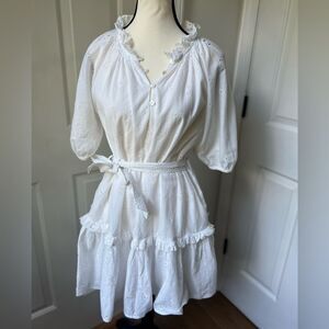 Cleobella | Ivory Lace Eyelet Mini Dress with Waist Tie Small