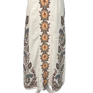Cleobella Jolene Veneto Paisley Ivory Ankle Midi Linen XS Dress Boho Indie Cottage NWT Handmade In India Artisan Resort Beach Wedding Ethical Fashion