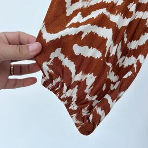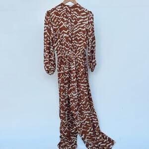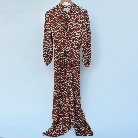 Cleobella Jumpsuit Brown Animal Print Long Sleeve Belted Small Wide Leg Palazzo