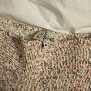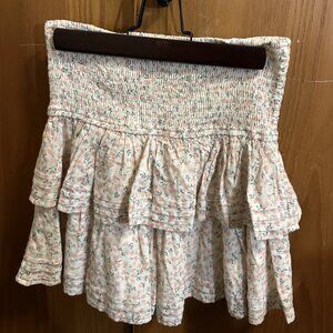 Lightly worn. 100% cotton. Hand wash cold. Fully lined. Smocked waistband. Tiered hem. Skirt measures approx 15.5" in length. Can be styled up or down. Reach out if interested!
