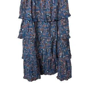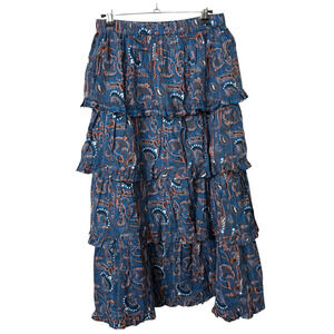 Cleobella Lana Tiered Midi Skirt High Waist Floral In Lazuli Ruffled Small