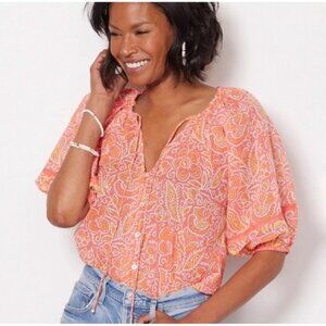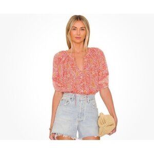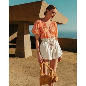 Cleobella Layla ORGANIC COTTON Top Orange Blossom Block Print SMALL Summer Trip
