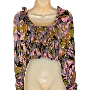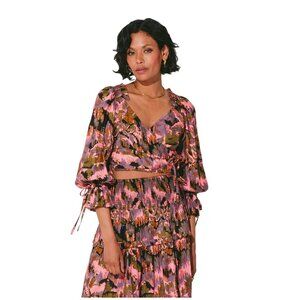 Cleobella Leighton Floral Wrap Crop Top with Puff Sleeves & Tie Details - Size S
