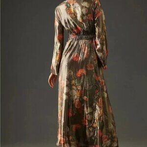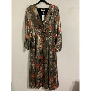 Cleobella Metallic Floral Maxi Dress Twist Front Long Sleeve Evening Gown LP