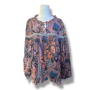 Cleobella NWT Karla Blouse Abstract Boho Balloon Sleeve Multicolor