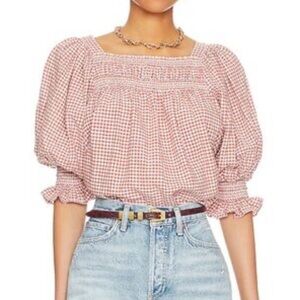 Gingham square neck, short sleeved top with puff sleeves and smocked detailing. Like new!