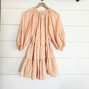 Cleobella Peach Tiered Mini Dress XS Bohemian Cottage Peasant Feminine Textured