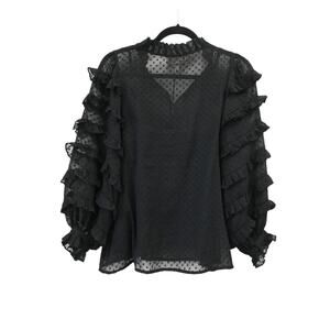 Cleobella Phoebe Sheer Black Top Small Swiss Dot Ruffle Balloon Sleeve Blouse