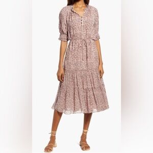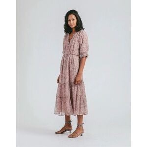 Cleobella Piper Tie Waist Chiffon Midi Dress Meadows Floral Pink Women’s Small