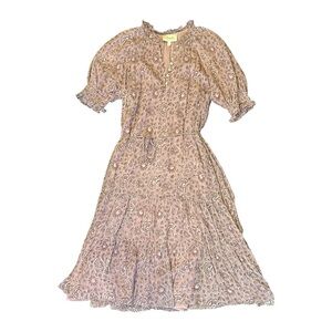 This Cleobella Piper Tie Waist Chiffon Midi Dress in Meadows Floral Pink is a Women’s Small ($258 MSRP). An enchanting bloom print patterns this boho-style chiffon midi made from an eco-friendly and sustainable fabric. A ruffled collar, smocked sleeves, defining waist tie and flouncy hem add endless charm. Measures approximately 18.5” pit to pit and 45” shoulder to hem, and is in very good condition!