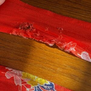 Robe is in great preowned condition other than a pinhole at the bottom. The belt is functional but one area is messed up and the end of on side is frayed.