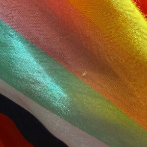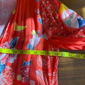 Vibrant red robe with colorful patterns. Long sleeves and flowing design. Perfect for lounging.