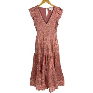 Cleobella Rita Ankle Dress Smocked Floral Tiered Size Small Organic Cotton NWOT
