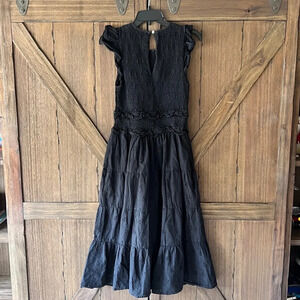 Cleobella Ruffle Sleeve Smocked Eyelet Midi Black Dress Size Medium GUC