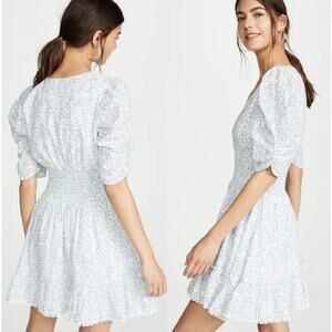 Cleobella Sadie Mini Dress Floral V-Neck Puff Sleeve Smocked Ruffle Cottagecore
