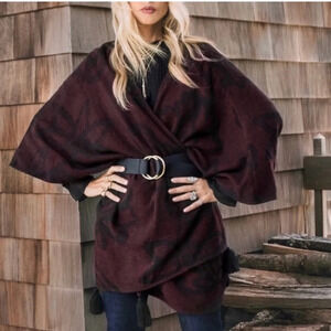 Cleobella Sevigny Capelet Shawl Poncho Cape One Size Maroon Black