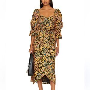 Cleobella Solange midi dress Matisse print black yellow cotton Revolve As Is