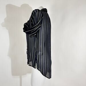 Cleobella Striped Button Down Ruffle Trim Office Shirt Blouse Top
