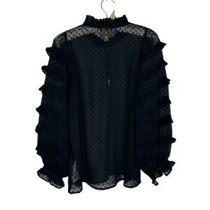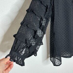 Cleobella Swiss Dot Sheer Ruffled Long Sleeve Blouse XS Black Boho Goth Girly