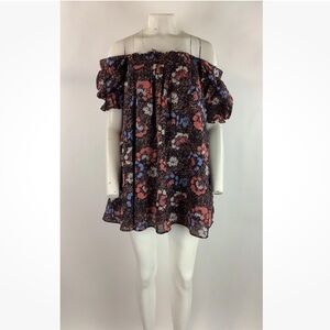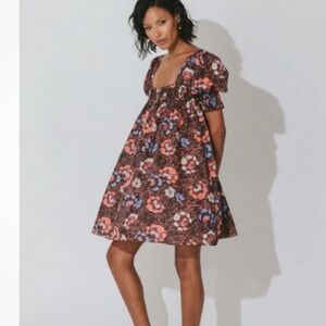 Cleobella Sz XS Boho Mischa Mini Smocked Organic Cotton Floral Dress Red