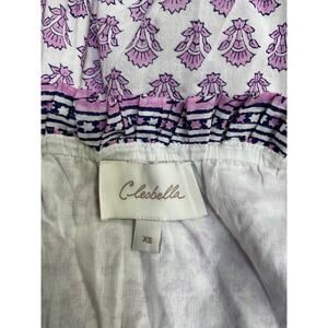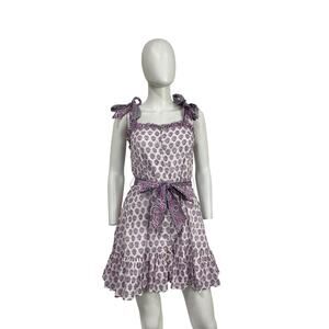 Cleobella 'Tillie' Pink Cotton Mini Dress Size XS: fully lined, self-tie shoulder straps with front button closure, detachable self-tie belt detail, pleated neckline, midweight linen fabric.