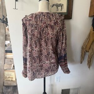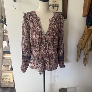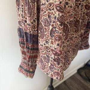 Cleobella Top M Floral Paisley Metallic Button Front Puff Sleeve Samara