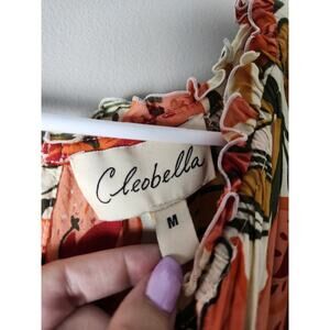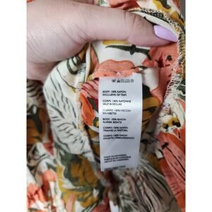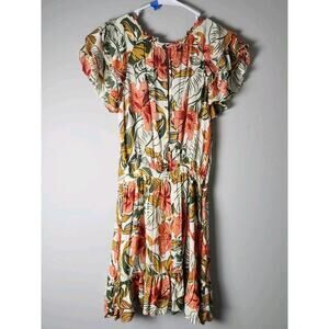 Cleobella Ulani Mini Flounce Dress Size Medium Tropical Indian Floral Ruffle Orange Green