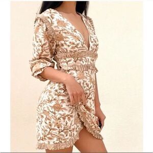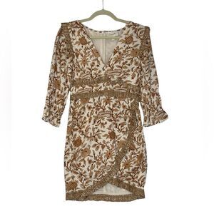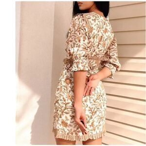 Cleobella Victoria Tan Floral Pleated Peasant Mini Dress| XS