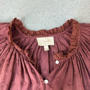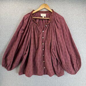 Cleobella Womens Burgundy Red Ruffled Button Front Blouse Top Cotton Size 2X