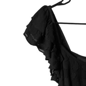 Cleobella Women's Dress Black Floral Tiered Short Sleeve Belted Fit Flare Mini S