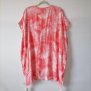 Cleobella Womens Pink V-Neck Tie Waist Tropical Swimwear Kimono Cover Up OS