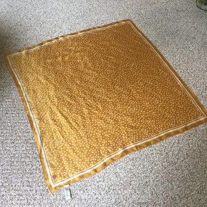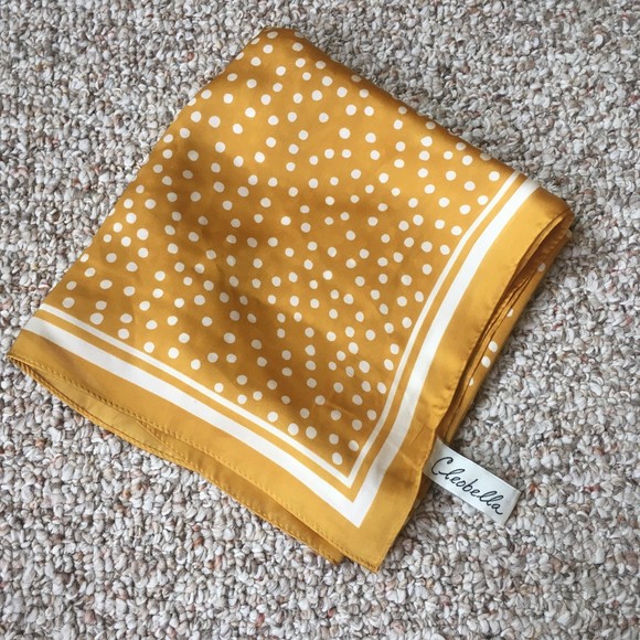 Chic yellow scarf with white polka dots. Perfect for adding a pop of color.