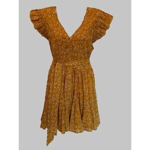 Cleobella Zia Cassia Yellow Organic Cotton Button Front Belted Mini Dress Sz, M