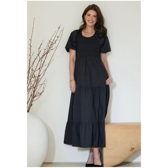Cleobella x Catherine Schwarzenegger Women’s Sz XS Black Puff Sleeve Cutout Tiered Maxi Dress. Excellent condition. Size tag has been removed - size based on measurements.