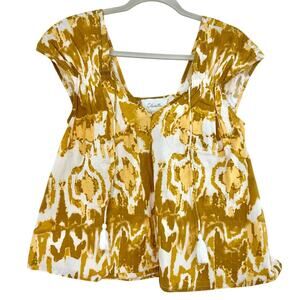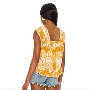 Cleobella x Revolve Naomi Cap Sleeve Blouse Yellow Watercolor Ikat Print Size XS