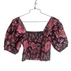 The eva is the perfect top to pair with denim or a midi skirt! This transitional print with elasticized sleeves adds a touch of excitement to any outfit. Materials & Specs: